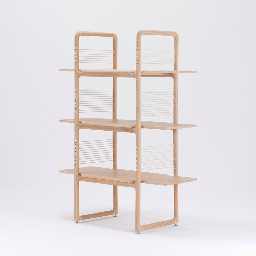 Fonctionnalité, esthétique et simplicité singulière à couper le souffle : tels sont les mots qui pourraient être utilisés pour décrire la marque Gazzda. Lits, tables de nuit, chaises, bureaux, rangements… chacun de leurs produits est pensé soigneusement pour vous aider à faire de votre chez-vous un endroit que vous ne voudrez plus quitter. Habillez votre pièce avec l'étagère Muse en chêne doux et son design minimaliste. Rangez vos livres et objets décoratifs sur l'étagère Muse, glissez- y vos polaroids et cartes postales grâce au système de cordons de part et d'autre de l'étagère ! Muse peut également servir de séparateur pour délimiter les espaces de vie. Existe aussi en version 216 cm.